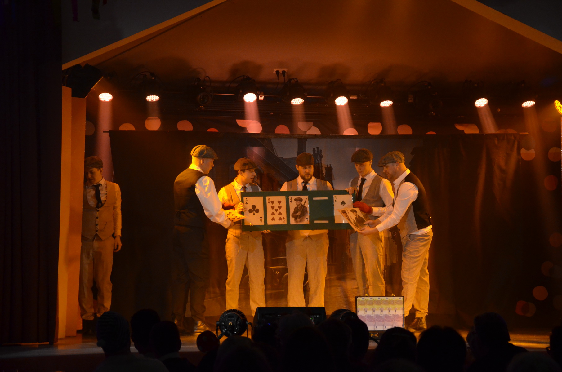 Marius Heurich, Thomas Groß und Niklas Göbel boten als Nonnen verkleidet ein gewohntes Bild mit vielen Witzen aus dem Dorfgeschehen in „Um Himmels Willen“. Die Tanzgruppe Sugar Foot Steps brachte mit „Sugar – between light and shadow“ das Bürgerhaus zum Beben, nachdem sie bereits am ersten Weyherser Fastnachtswochenende bei der „Night oft he Steps“ viele befreundete Gruppen zum Tanzabend geladen hatten. Ein weiteres Highlight zeigte auch in diesem Jahr die Männertanzgruppe Jazzkützzz (Leitung: Selina Zink und Kathrin Baumgarten) mit ihrem Tanz „Nights of Birmingham“. Selbstverständlich durften auch die „Zwä uff de Baank“ (Mario Weber und Christian Wehner) nicht fehlen: Mit Anekdoten aus dem Dorf und aus ihrem Leben sorgten sie für beste Stimmung im Saal. Bevor das große Finale anstand, brachte das Team der Show (Leitung: Gina Minkley, Paulina Weismüller, Emily Wehner, Lea Vey) mit der „Show des Manitu“ Wild-West-Feeling ins Bürgerhaus und bildete so den fulminanten Abschluss der beiden Kappenabende.